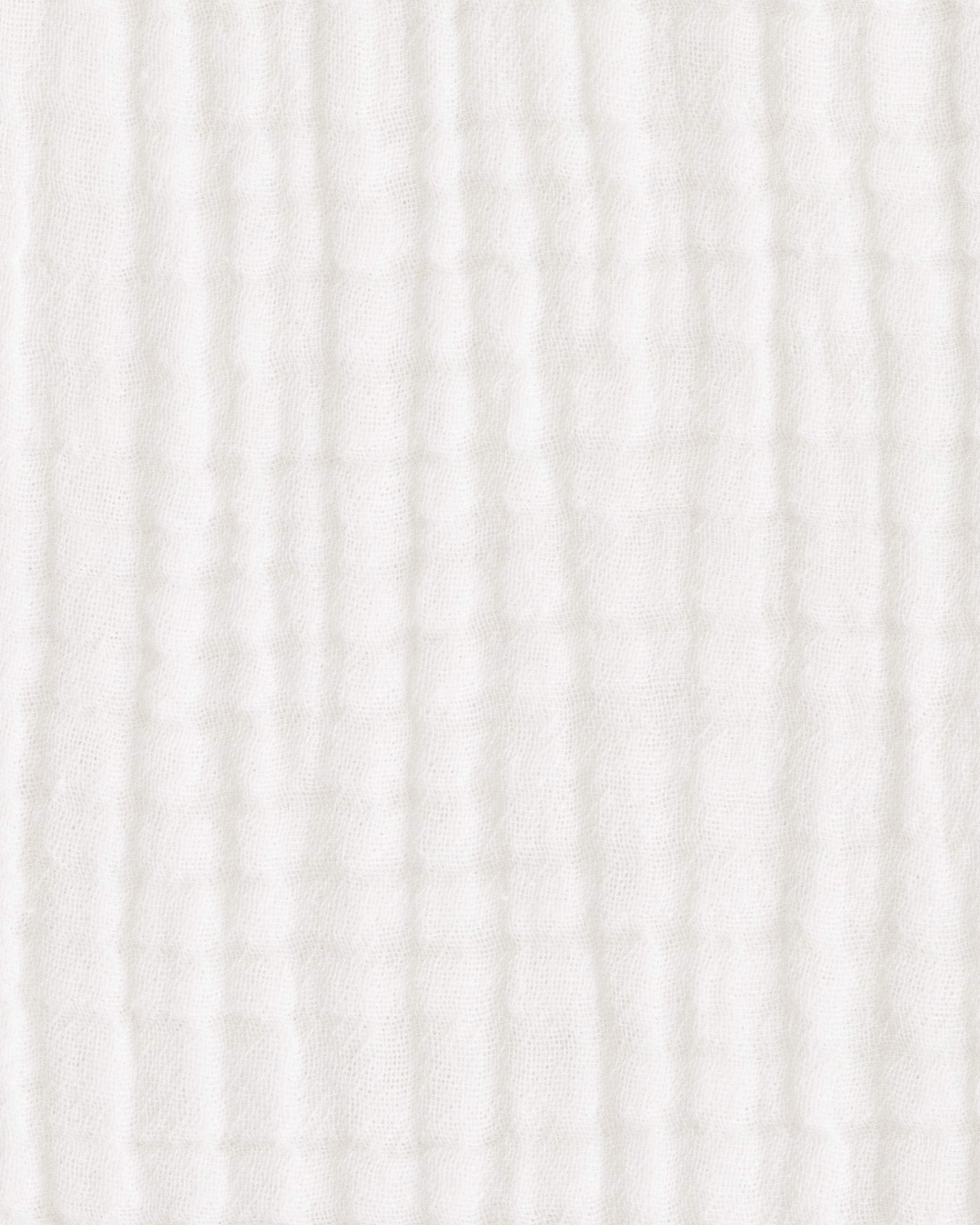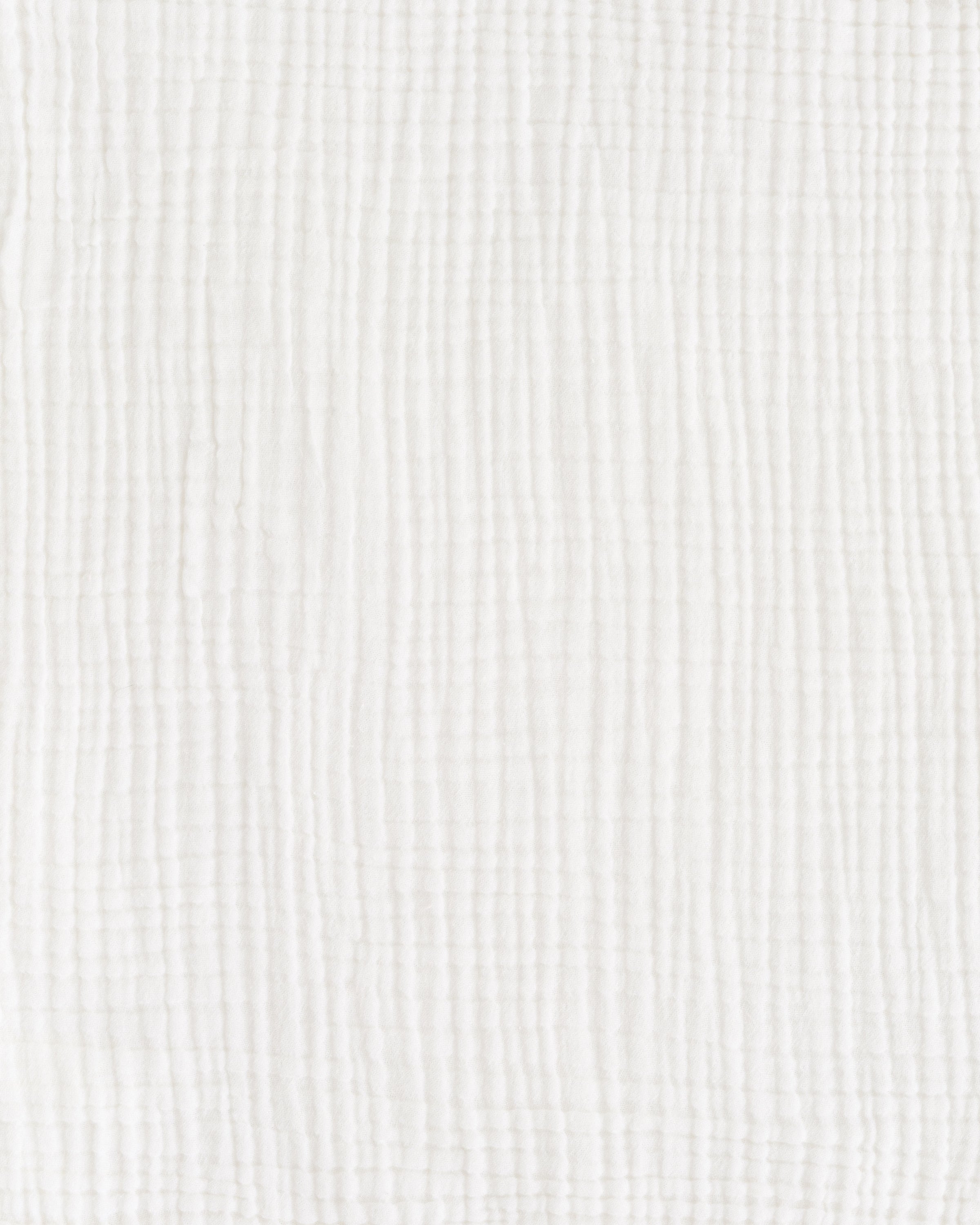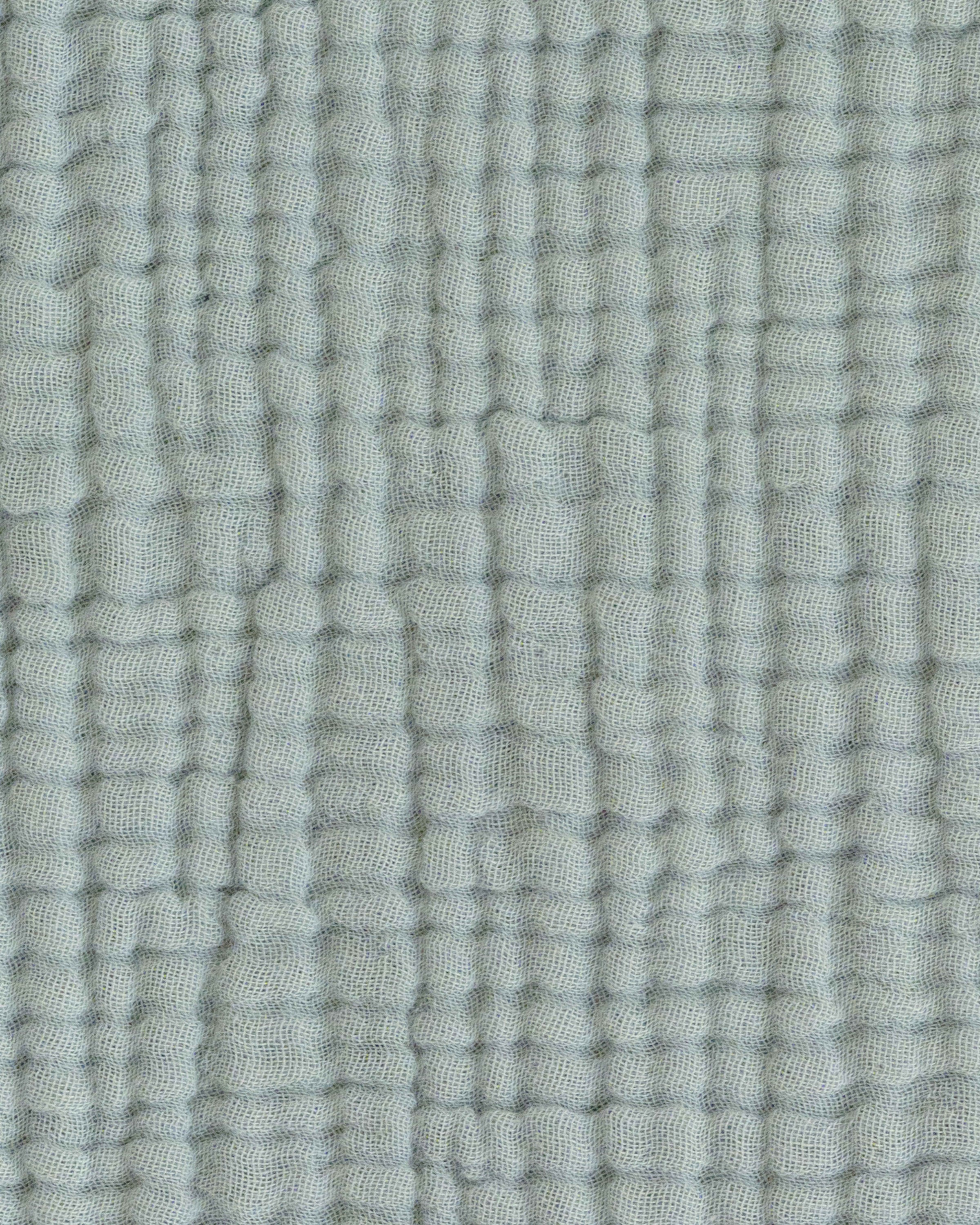 This product is sewn prior to being dyed and receiving a final, softening wash. This method produces a richer texture cotton gauze that cannot be achieved if the fabric is fully processed prior to sewing. Small openings in the weave where threads join different layers of fabric together are visible along the entire surface of many other gauzes. Our garment dye and wash method makes this part of the fabric's construction invisible, allowing you to experience a more beautiful surface appearance for the lifetime of your gauze. (Undyed products are not garment dyed--only garment washed to achieve final texture.)