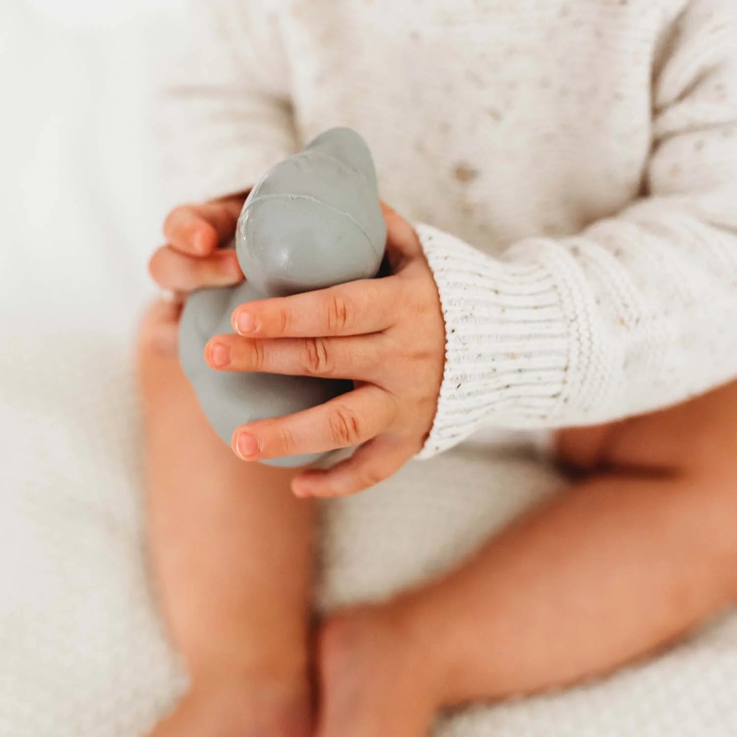 Elvis the Duck in Mint is the classic natural rubber duck. Ready to waddle and splash during bath time fun with little ones. It will become a favorite teether, bath toy, and sensory play toy.