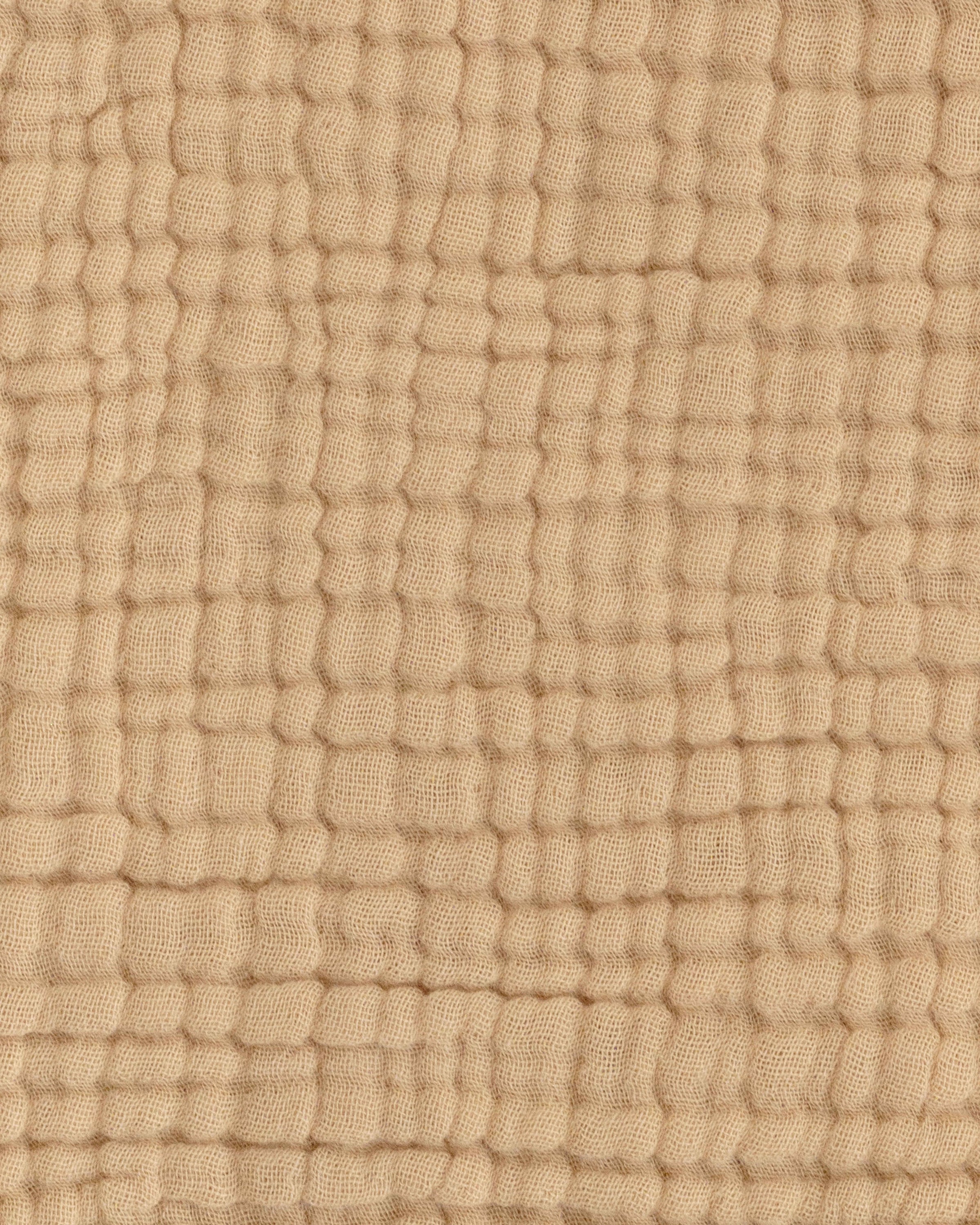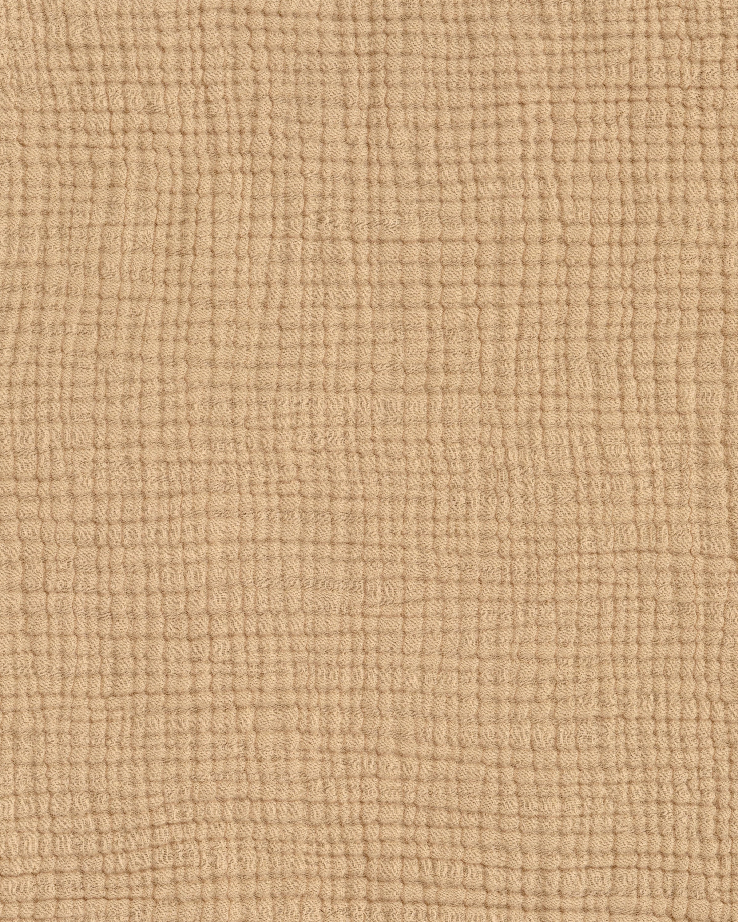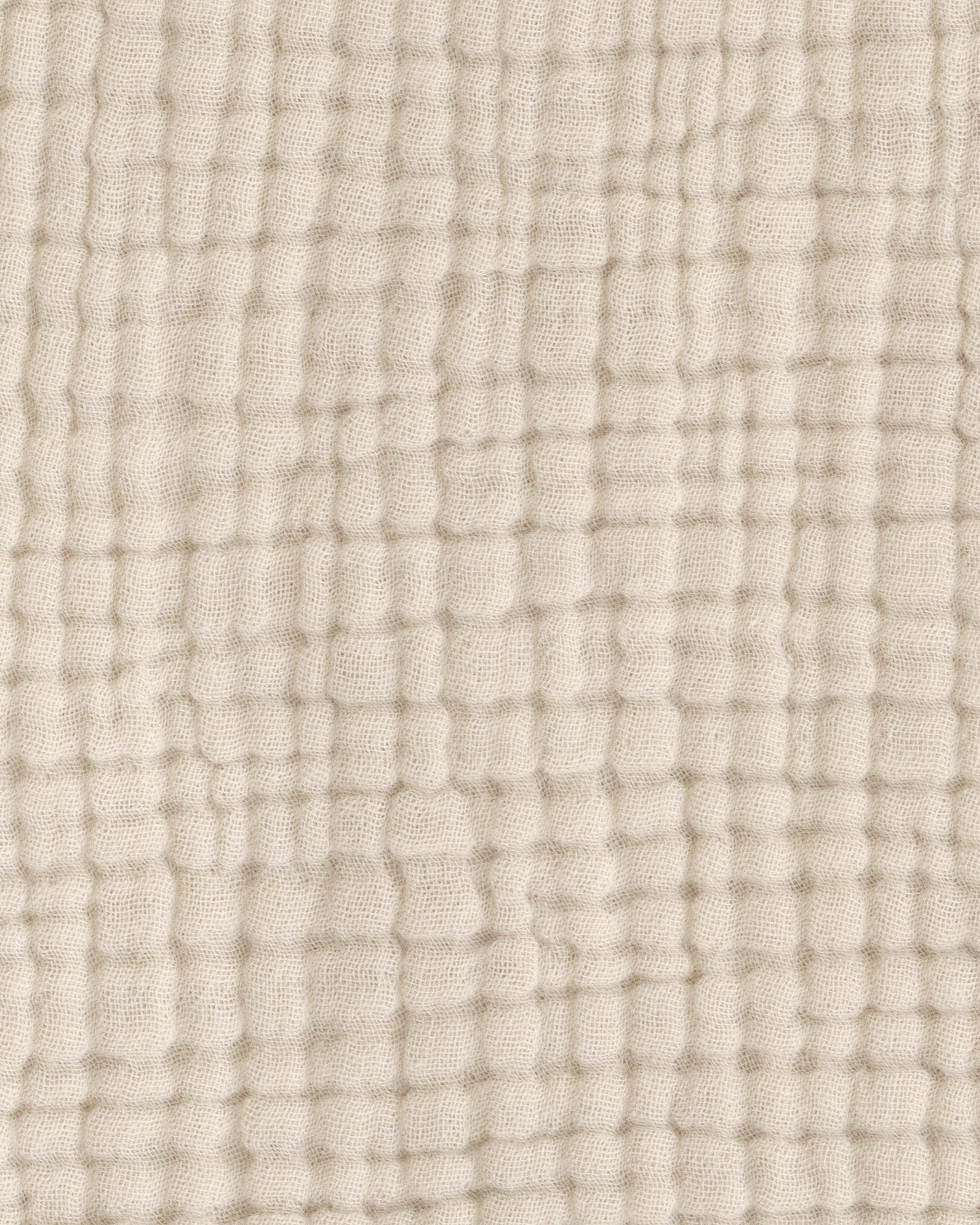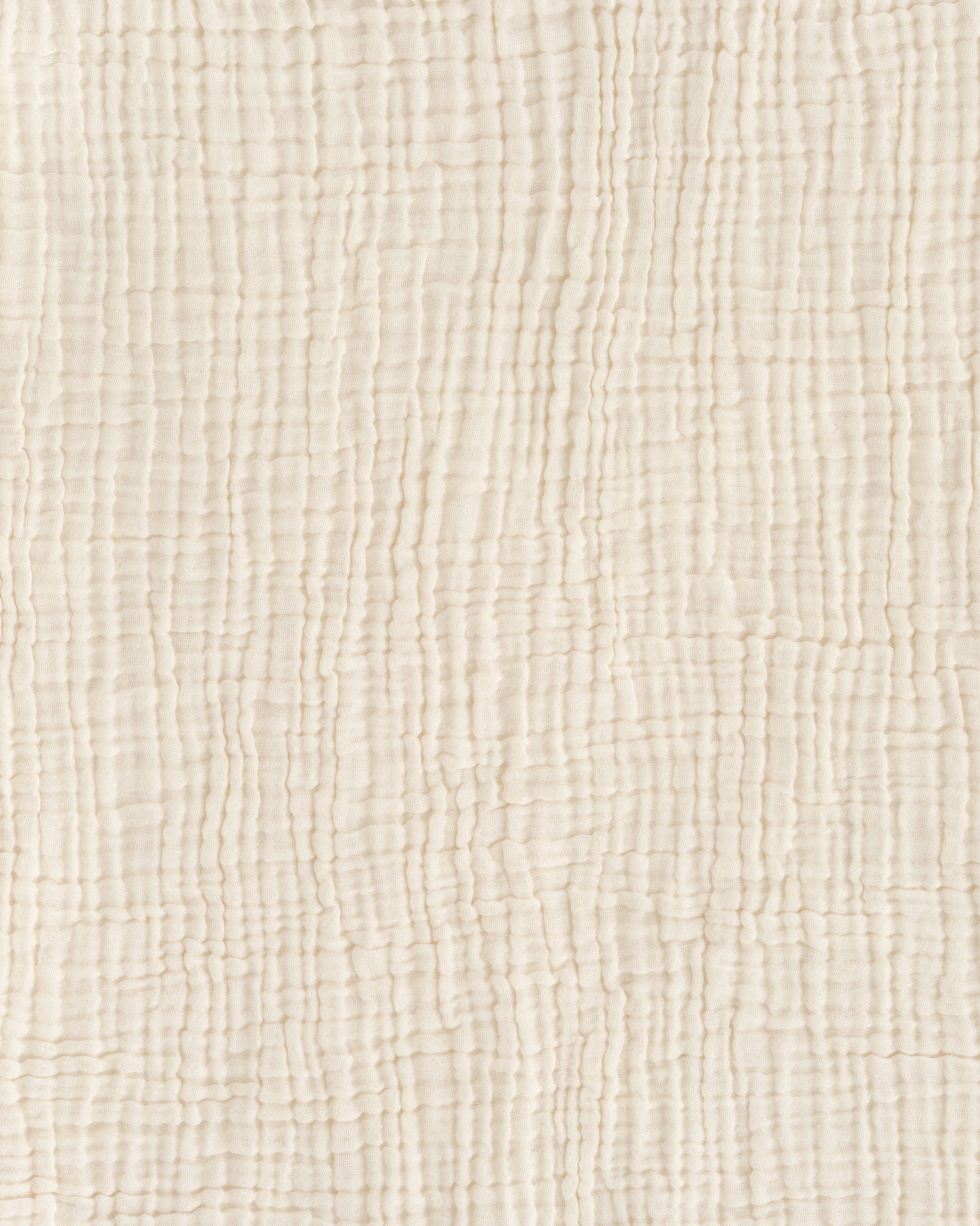 This product is sewn prior to being dyed and receiving a final, softening wash. This method produces a richer texture cotton gauze that cannot be achieved if the fabric is fully processed prior to sewing. Small openings in the weave where threads join different layers of fabric together are visible along the entire surface of many other gauzes. Our garment dye and wash method makes this part of the fabric's construction invisible, allowing you to experience a more beautiful surface appearance for the lifetime of your gauze. (Undyed products are not garment dyed--only garment washed to achieve final texture.)
